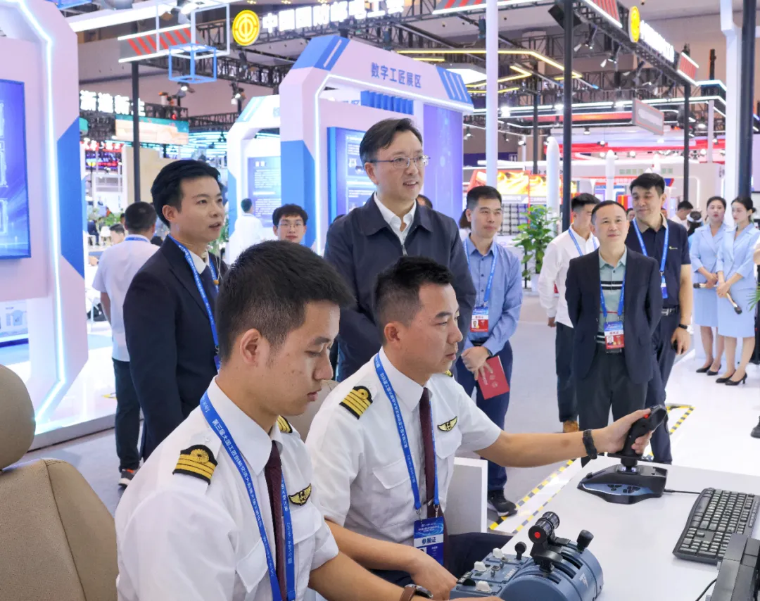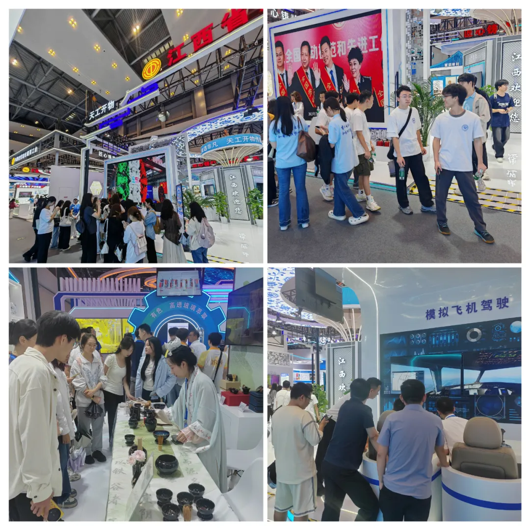 开幕当天,出席本次大会的江西省总工会党组书记、常务副主席邹绍辉率队到江西省总工会展区巡馆,观摩体验了铁路应急操作机器人、智能船舶、热敏灸治疗仪、东航模拟飞行训练系统等代表性参展项目,并与现场的劳模工匠亲切交流。邹绍辉勉励大家要珍惜展示平台,以精湛技艺和创新成果彰显赣鄱工匠追求卓越、勇于突破的精神风貌,展现江西职工队伍勇立创新潮头、敢闯敢干的奋斗姿态。省总工会党组成员、经审会主任应朝晖参加。
