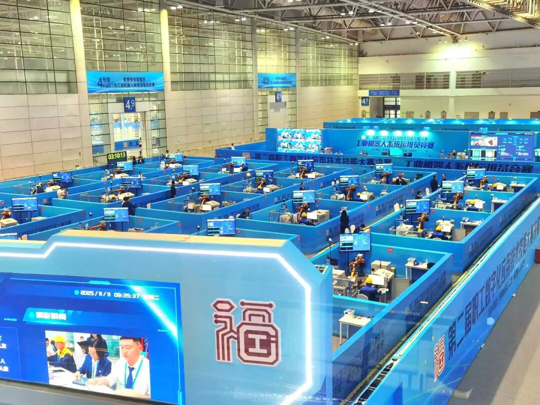 本届大赛由全国总工会、福建省人民政府主办,聚焦“提升数字技能,更好发挥主力军作用”主题,设置工业机器人系统运维员、数据安全管理员、无人机装调检修工3个决赛工种,生成式人工智能系统应用员、无人机驾驶员2个观摩工种,均为大数据、互联网、人工智能与传统工业领域结合型工种。职工选手参加理论考核、实操竞技、场景应用等比拼,展现自己精湛的数字技术技能。相较首届大赛,本次大赛通过“职工之家”APP首次实现赛前网上练兵、决赛考试及评分、结果汇总分析等全流程数智化办赛。大赛自5月启动以来,带动全国超300万名职工参与练兵比武,超8000人参加省级选拔赛。同时,决赛期间,现场还设置了职工数字化技术技能应用成果展。